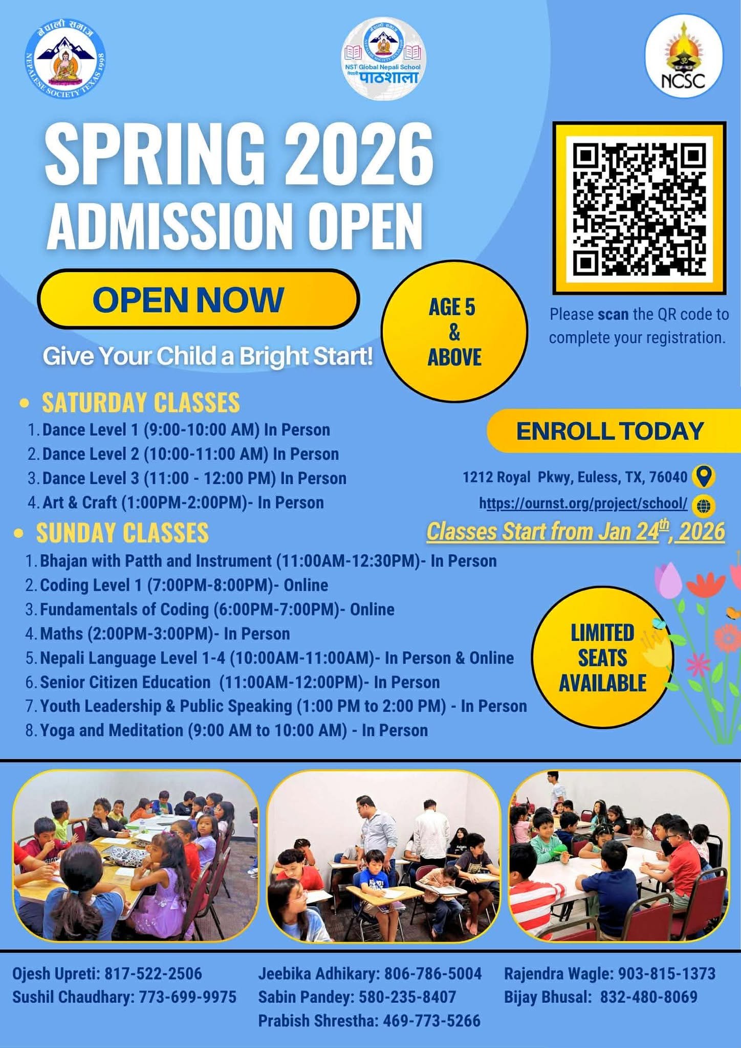 Dear Parents, Aspiring Students, and Community Members, We are pleased to announce the Opening of Admission for the Spring 2026 Session. As usual, seats are limited, so we encourage you to enroll as early as possible. The full schedule is outlined on the flyer below: