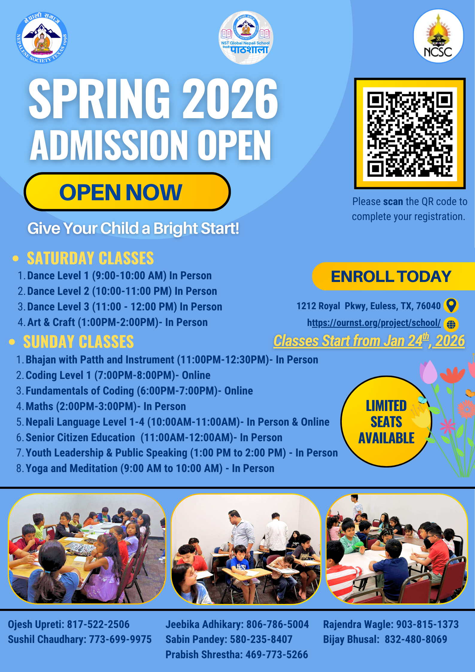 Dallas, Texas Dallas, TX, United StatesDear Parents, Aspiring Students, and Community Members, We are pleased to announce the Opening of Admission for the Spring 2026 Session. As usual, seats are limited, so we encourage you to enroll as early as possible. The full schedule is outlined on the flyer below: Spring Registration Link
